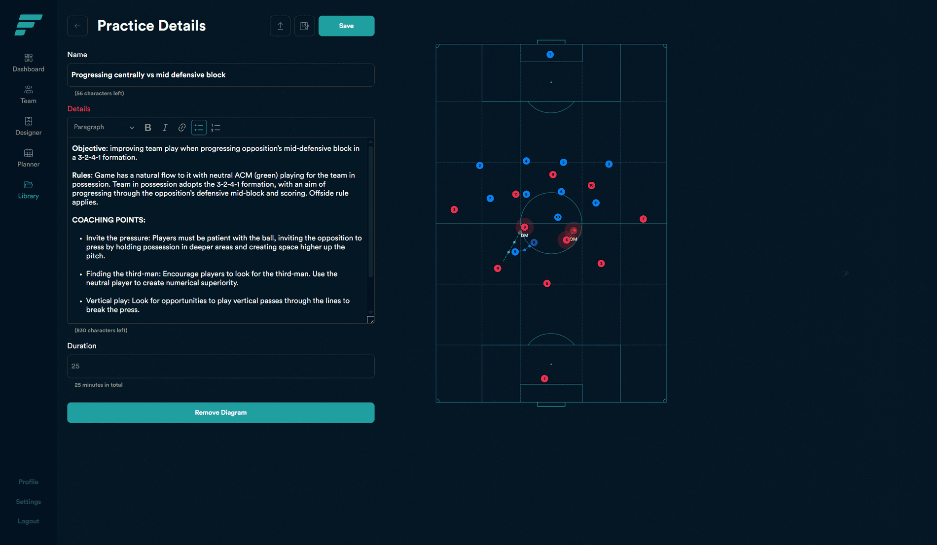 Build your personal knowledge base. Create, organize, and store practices, sessions, and game plans in folders, ready to present directly in-app or export for sharing.