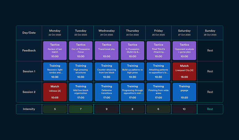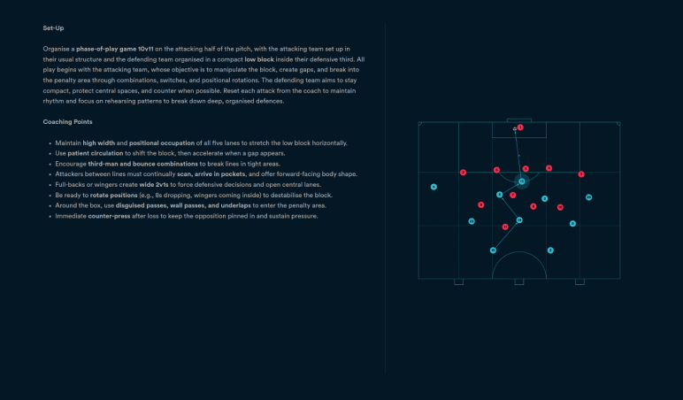A visual layout illustrating player movements, formations, and tactical ideas in video format.