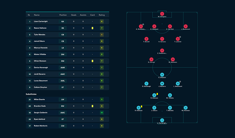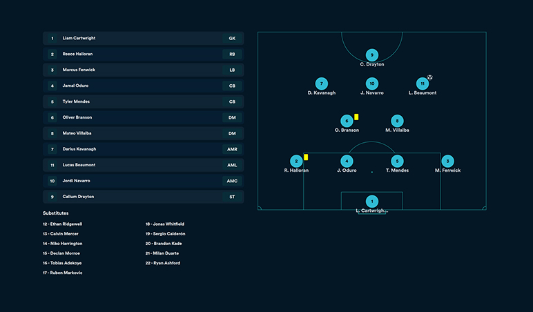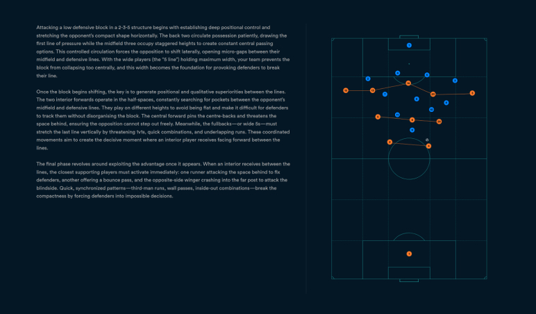 A detailed overview of the tactical setup, instructions, and strategic choices used in the game.